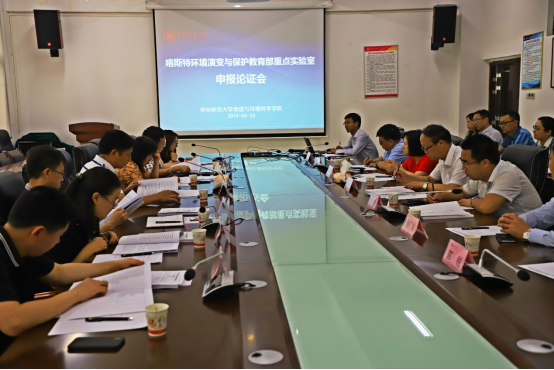 6月26日,“喀斯特环境演变与保护教育部重点实验室”申报论证会在花溪73882必赢网页版3309会议室召开,校长肖远平出席。论证会由我校科技处处长龙健主持。论证会专家由中国科学院地球化学研究所陈敬安研究员、贵州省生态气象和卫星遥感中心谷晓平研究员、贵州省地矿局科技处刘建中教授级高工、贵州财经大学王永平教授、贵州省水科院商崇菊研究员、贵州大学黄海松教授和肖昕教授组成。院党委书记杨建红、院党委副书记、院长周忠发、副书记郭锐、副院长杨广斌、学科建设办主任赵宇鸾、实验室方向学术带头人、系主任和骨干教师代表参加。